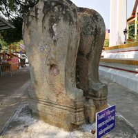 เสมาหินสลัก เป็นเสมาหินสลักขนาดใหญ่ ๑๗ ใบ อยู่รอบอุโบสถ ใบหนึ่งอยู่ด้านหน้าอุโบสถ