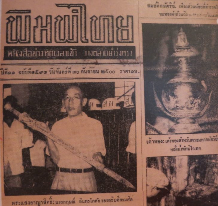 กฤษณ์ อินทโกสัย รองอธิบดีกรมศิลปากร ถือพระแสงขรรค์ชัยศรี ภาพจากหนังสือพิมพ์พิมพ์ไทย