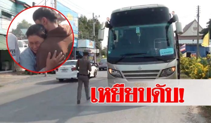 ร่างไถลมุดใต้ท้องรถบัส เหยียบดับ คาที่!!