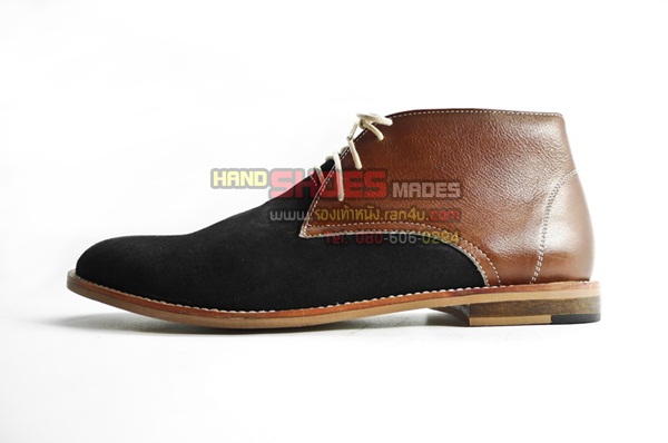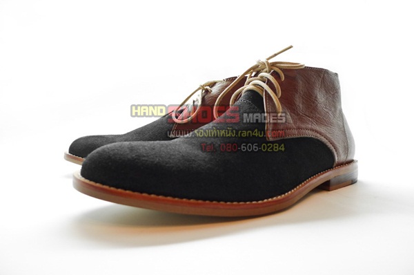 J315 รองเท้าหุ้มข้อ oxford สีดำสลับน้ำตาลพื้นไม้