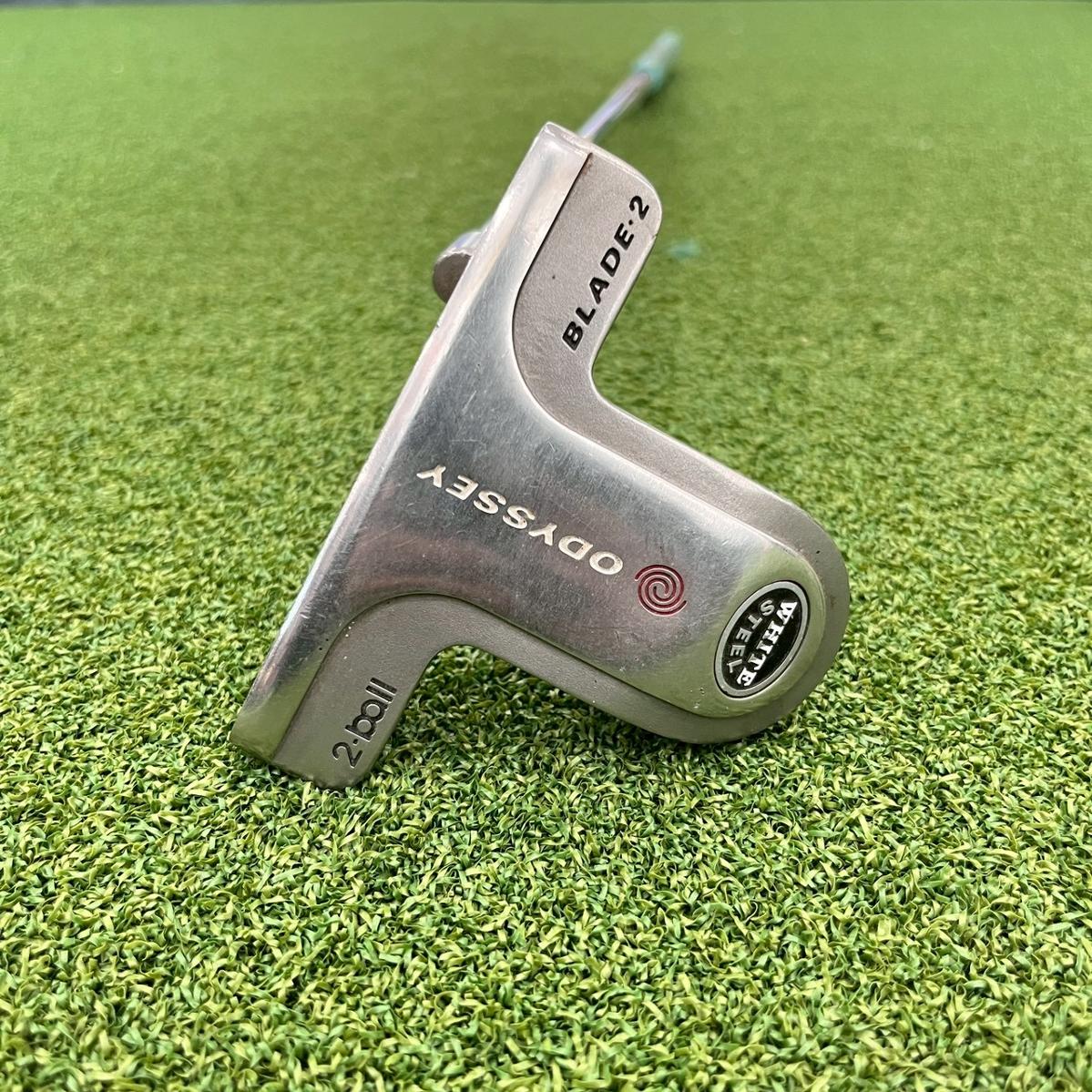 PUTTER ODYSSEY 2-BALL BLAED-2 ความยาวก้าน 34 นิ้ว ที่ได้รับความนิยมอยู่แล้ว และเพิ่มเม็ดมีดสเตนเลสสตีลไว้ด้านหน้าไม้ การผสมผสานจะสร้างความรู้สึกที่กระชับกว่าเม็ดมีด White Hot แบบเดิม และทำให้ได้ลูกกอล์ฟวิ่งเรียบขึ้นหรือลูกกอล์ฟเนื่องจากสเตนเลสสตีลอยู่ต