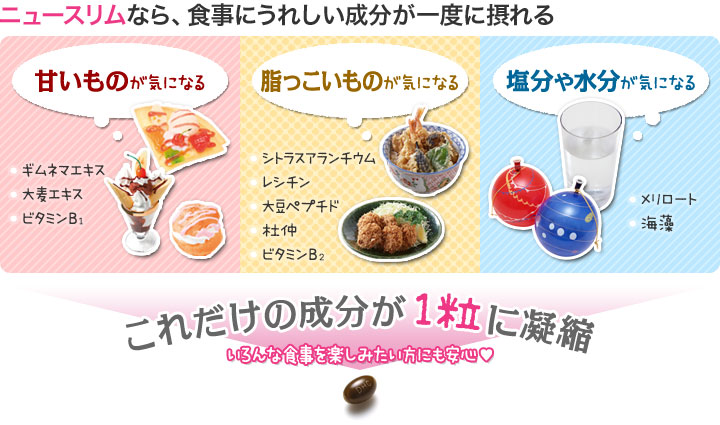 อาหารเสริมลดน้ำหนัก ช่วยเผาผลาญและลดไขมันอย่างมีประสิทธิภาพ ช่วยเผาผลาญแคลอรี่และไขมันที่ไม่ต้องการ เหมาะสำหรับคนที่กินเก่ง ทานอาหารเยอะ แต่ไม่อยากมีไขมันสะสม บอกลาไขมันส่วนเกินอย่างได้ผลไม่เป็นอัตรายต่อสุขภาพ DHC Newslim นิวสลิม ช่วยเผาผลาญไขมันส่วนเกิน นิยมกันสุดๆในญี่ปุ่น ขึ้นอันดับ 1 อาหารเสริมลดน้ำหนักของDHCญีปุ่นสามปีซ้อน