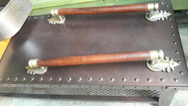 Brass Door Handle Item Code AC.028 size long 60 cm wood base long 740 mm. wide 75 mm. base D : 40 mm