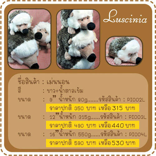 ตุ๊กตาเม่น ทา่นอน มีหลายขนาดให้เลือก