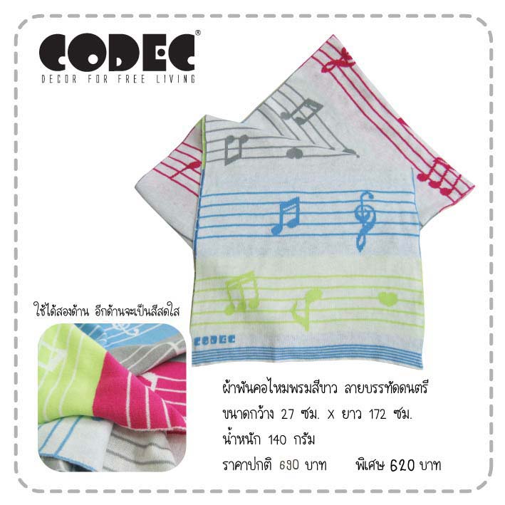 ผ้าพันคอ ลาย บรรทัดดนตรี สีขาว