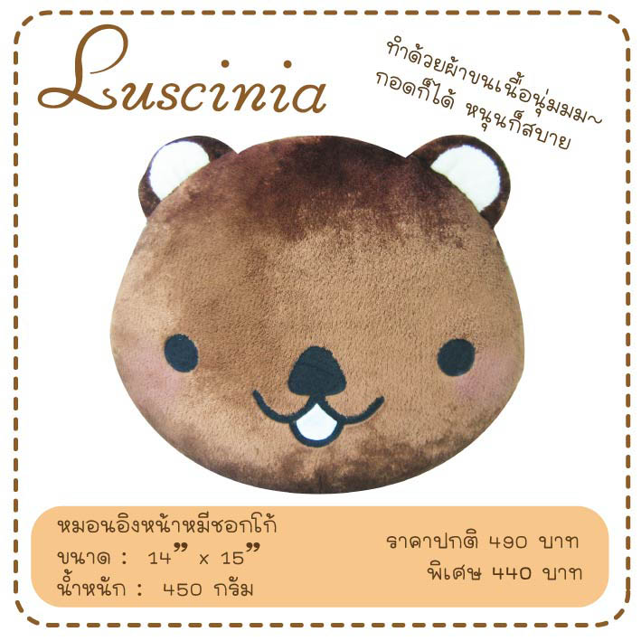 หมอนอิงหน้าตุ๊กตาหมีสีน้ำตาลเข้ม