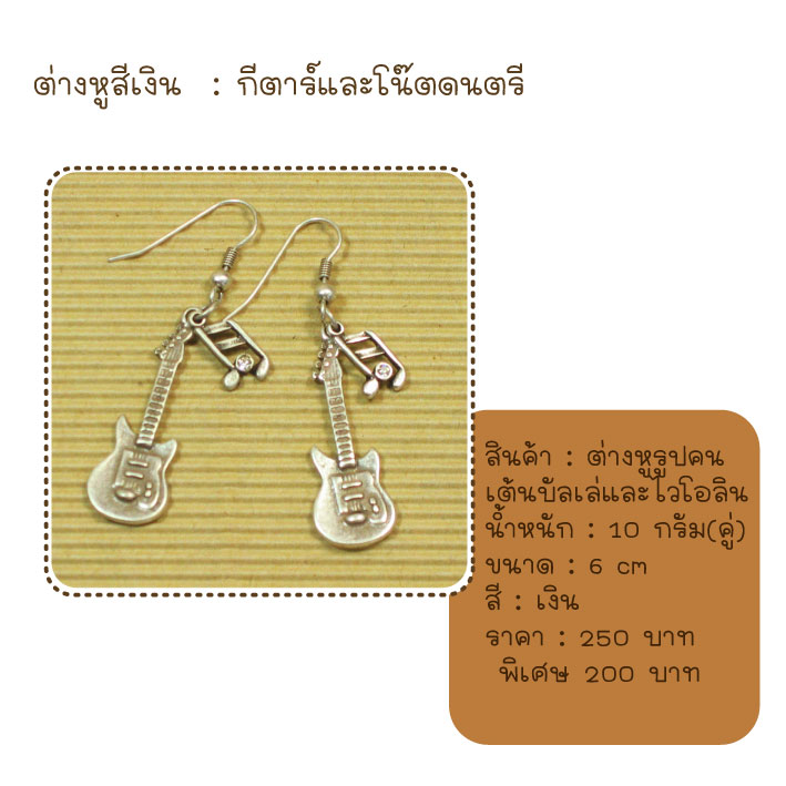 ต่างหูตุ้งติ้งกีตาร์ สีเงิน