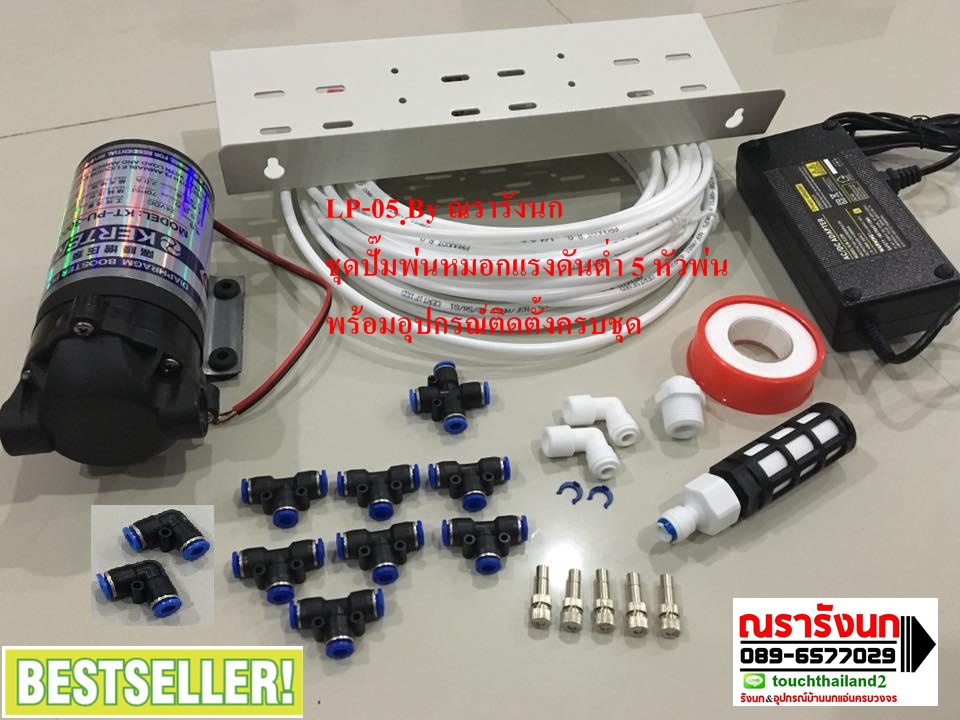 อีเมลล์: swiftletthailandshop@gmail.comLP-05 : ชุดปั๊มพ่นหมอกแรงดันต่ำ ขนาด 5 หัวพ่น 1 ชุดประกอบด้วย