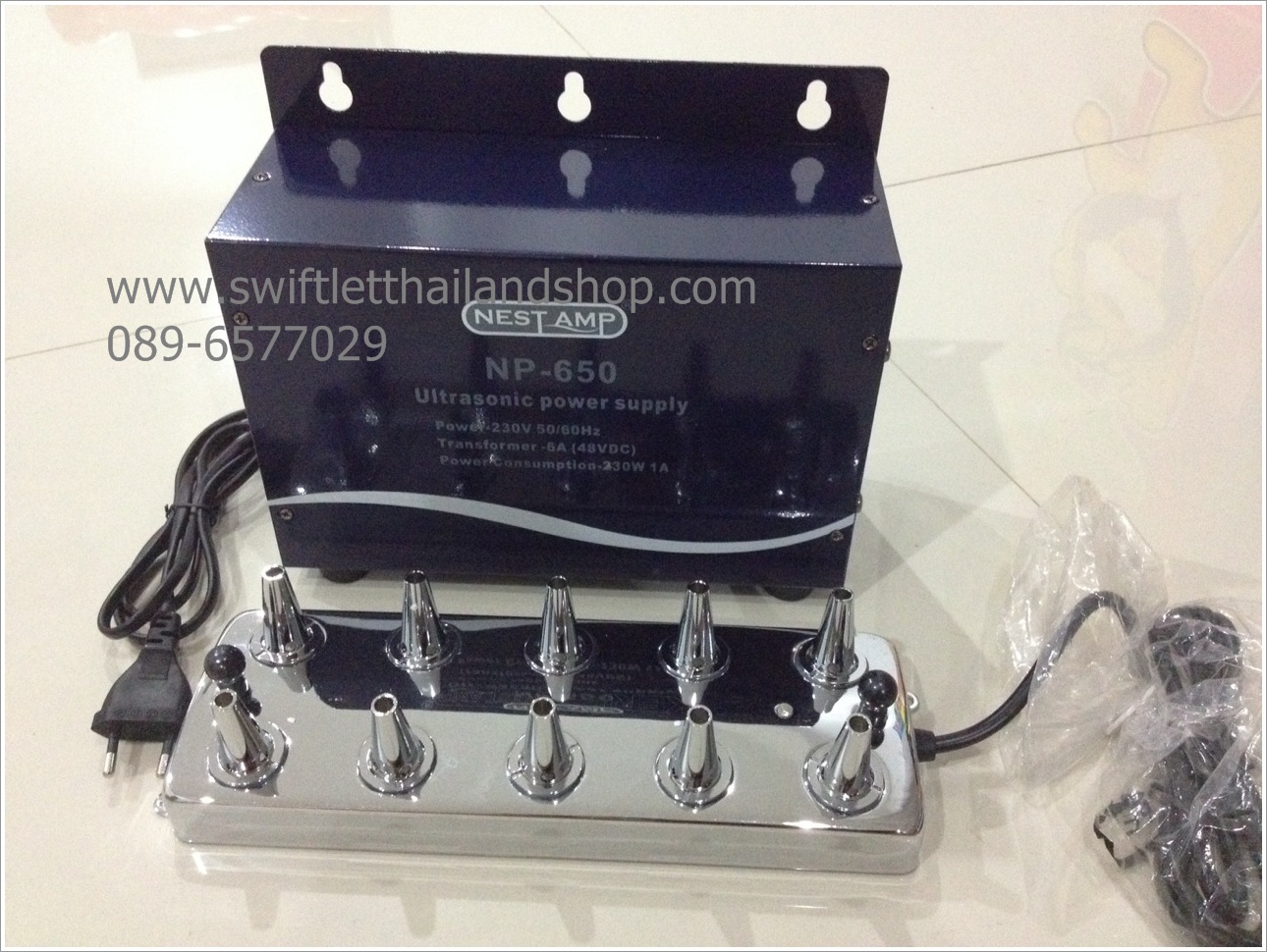 อีเมลล์: swiftletthailandshop@gmail.comE19 - MIST MAKER 10 HEADS WITH TRANSFORMER ตัวทำหมอก 10 หัวใหม่ล่าสุด มาพร้อมกระสวยขับหมอก เครื่องปั๊มน้ำและสายเชื่อมต่อยาว 10 เมตรตัวทำหมอกคุณภาพสูง ทำงานเงียบสนิท ไม่รบกวนนก เพื่อสร้างความชื้นในบ้านนกแอ่นของคุณ