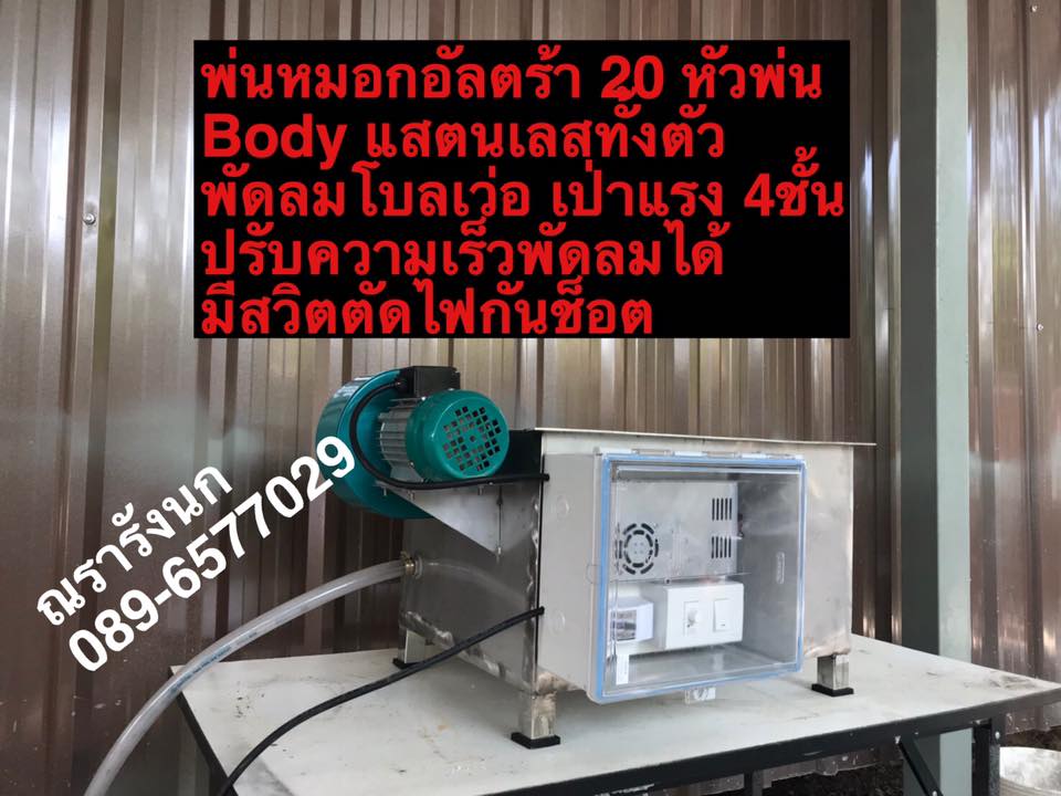 อีเมลล์: swiftletthailandshop@gmail.comM20- STANLESS ULTRASONIC HUMIDIFIER 20H เครื่องพ่นหมอกอัลตร้าโซนิคขนาด 20 หัวพ่น ตัวเครื่องทำจากสแตนเสลอย่างดีทั้งชุด ทนทาน มาพร้อมพัดลมโบลเว่อแรงสุดๆๆ สามารถเป่าขึ้นได้ถึง4 ชั้นตึก พัดลมปรับความเร็วได้ มีสวิชตัดไฟกันช็อต สามารถต่อท่อไปยังจุดต่างๆของบ้านได้ครอบคลุม แรงสุดๆๆ