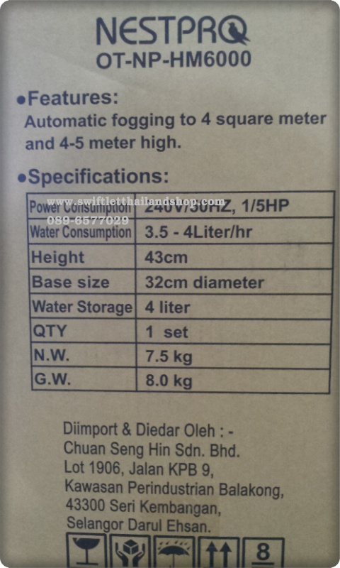 อีเมลล์: swiftletthailandshop@gmail.comN1-NESTPRO HUMIDIFIER SET HM6000
