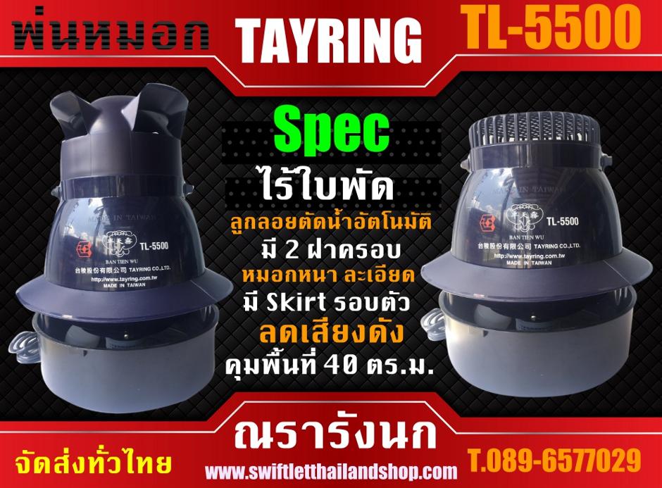 อีเมลล์: swiftletthailandshop@gmail.comE14D -TAYRING TL-5500 TAIWAN HUMIDIFIERโฉมใหม่.ไร้ใบพัด..ลดเสียงดังรบกวนนก..สุดยอดพลังขับหมอก ด้วยอัตราการหมุนของมอเตอร์ที่ 5500 รอบ/นาที มาพร้อม Skirt และฝาครอบกระจายหมอกดีไซด์ใหม่ล่าสุด ถึง 2 แบบ 2 สไตล์ ขับหมอกสูง 2.5-3.5 เมตร ครอบคลุมพื้นที่ 20 ตร.ม.