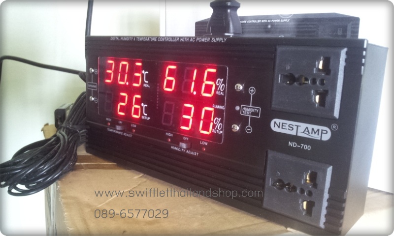 อีเมลล์: swiftletthailandshop@gmail.comE3N-NEST AMP HUMIDITY OR TEMPERATURE CONTROL ND-700 เครื่องควบคุมอุณหภมิความชื้นอัตโนมัติ ให้ค่าที่่แม่นยำ ทนทาน ต่อกับพ่นหมอกหรือพัดลมได้ถึง 4 ตัว มาพร้อมสายเซ็นเซอร์ยาวถึ 10 ม.