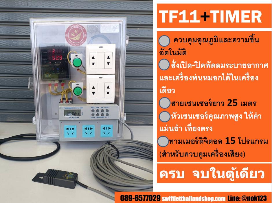 อีเมลล์: swiftletthailandshop@gmail.comTF-11 Temperature and Humidity Controller+Digital TIMER ประกอบลงตู้พร้อมใช้ สุดยอดเครื่องควบคุมอุณหภูมิความชื้นอัตโนมัติ หัวเซฯเซอร์คุณภาพสูง ทนทาน สายเซนเซอร์ยาว 25 ม. ให้ค่าเสถียร ไม่แปรปรวน เพื่อสั่งการกับเครื่องพ่นหมอกสร้างความชื้น และพัดมระบายอากาศ มาพร้อมทามเมอร์ดิจิตอล 15 โปรแกรม ตั้งเวลาอัตโนมัติ สำหรับควบคุมการเปิด-ปิดของเครื่องเสียงได้ถึง 3 ตัว คุ้มค่า ครบ จบ ในตู้เดียว