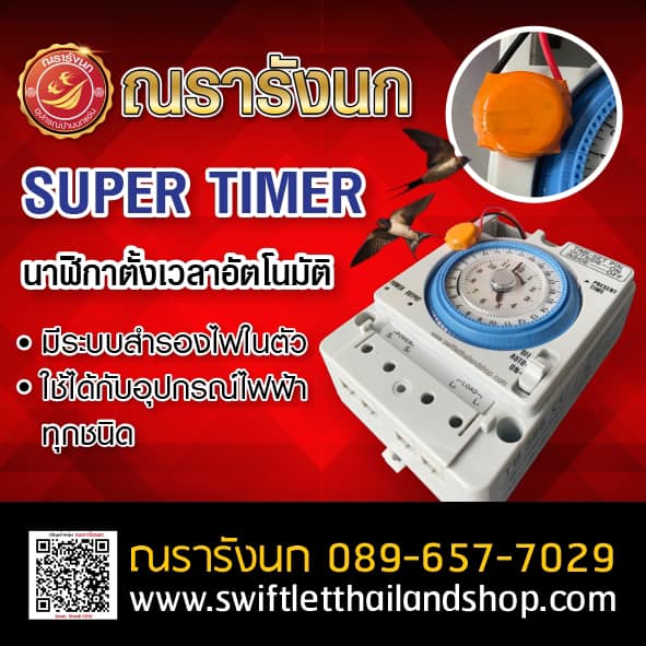 อีเมลล์: swiftletthailandshop@gmail.comD9 - SUPER TIMER TB-35 เครื่องตั้งเวลาอัตโนมัติ UPER TIMER TB-35สำหรับต่อพ่วงกับอุปกรณ์ไฟฟ้าทุกประเภท ตั้งค่าได้ในระดับ 15 นาที มีระบบสำรองไฟในตัว ทำให้นาฬิกายังคงทำงานปกติเมื่อไฟฟ้าดับ ทำให้การทำงานและสั่งการไม่ผิดพลาด ติดตั้งง่ายมาก ทนทาน คุ้มค่า