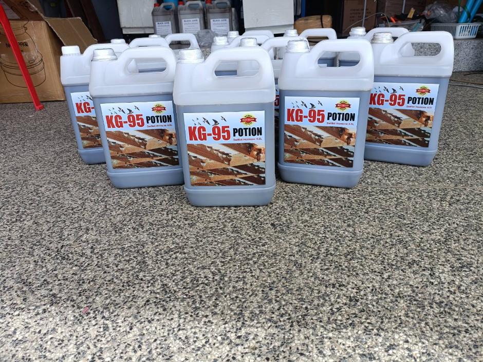 อีเมลล์: swiftletthailandshop@gmail.comKG-95 POTION สุดยอดฮอร์โมนปรับสภาพบ้านนกเปิดใหม่ สูตรเข้มข้นมากที่สุด ช่วยดับกลิ่นปูนและกลิ่นไม่พึงประสงค์ก่อนเปิดบ้านใหม่ สร้างบรรยาศดึงดูดนกเข้านอน ทำรัง บรรจุ 4.5 ลิตร การใช้งานดังนี้