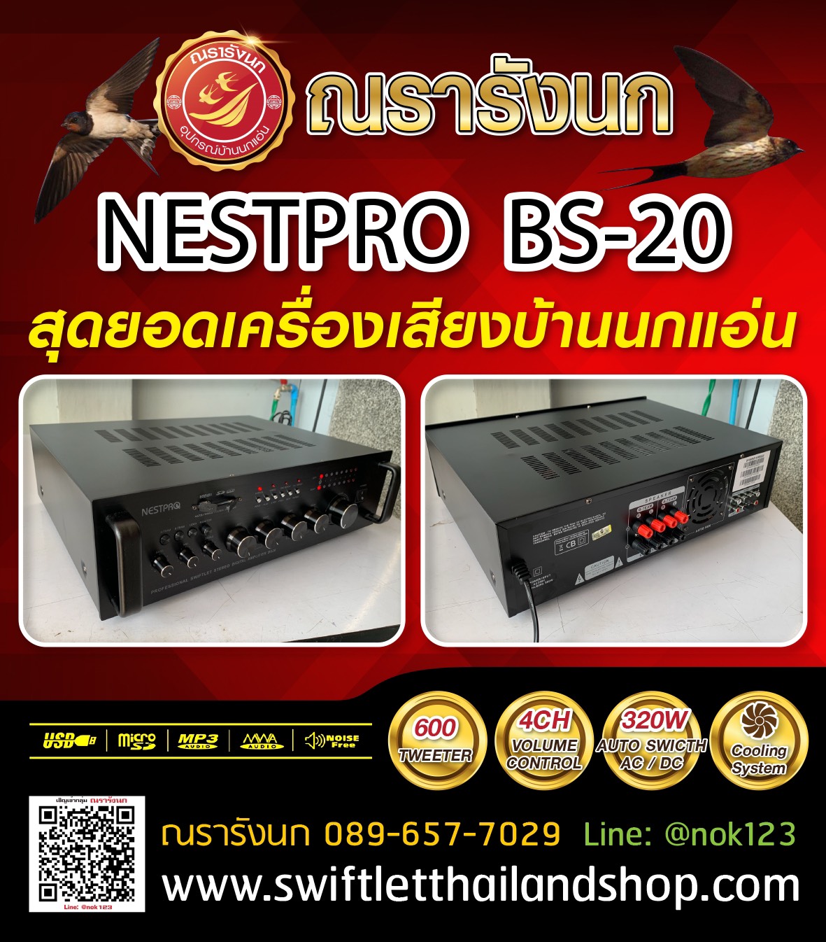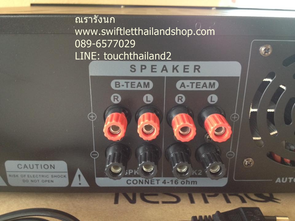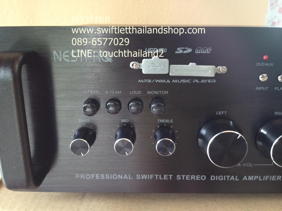 อีเมลล์: swiftletthailandshop@gmail.comB8A-Nestpro Amplifier MXBS20-4ch เครื่องเสียงรุ่นใหญ่คุณภาพสูง รองรับ USB และ SD Card กำลังขับลำโพง TWEETER 600 ตัว แยกอิสระ 4 Channel ปรับเสียงแยกได้อิสระแต่ละ Channel มีพัดลมระบายอากาศระบายความร้อนในตัว