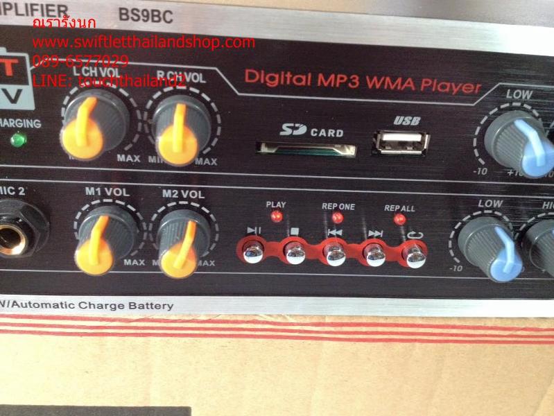 อีเมลล์: swiftletthailandshop@gmail.comBS7-TECNIK PA-TK-MXBS-9BC เครื่องเสียงเรียกนกรุ่นเล็กคุณภาพสูงเกินตัวจาก มาเต็มสูบ 2CH กำลังขับ Tweeter ที่ 150-200ตัว รองรับทั้ง USB และ SD Card มีพัดลมระบายความร้อนในตัว เหมาะทั้งระบบเสียงนอกและเสียงใน คุ้มค่า ทนทาน ในราคาประหยัดสุดๆๆ