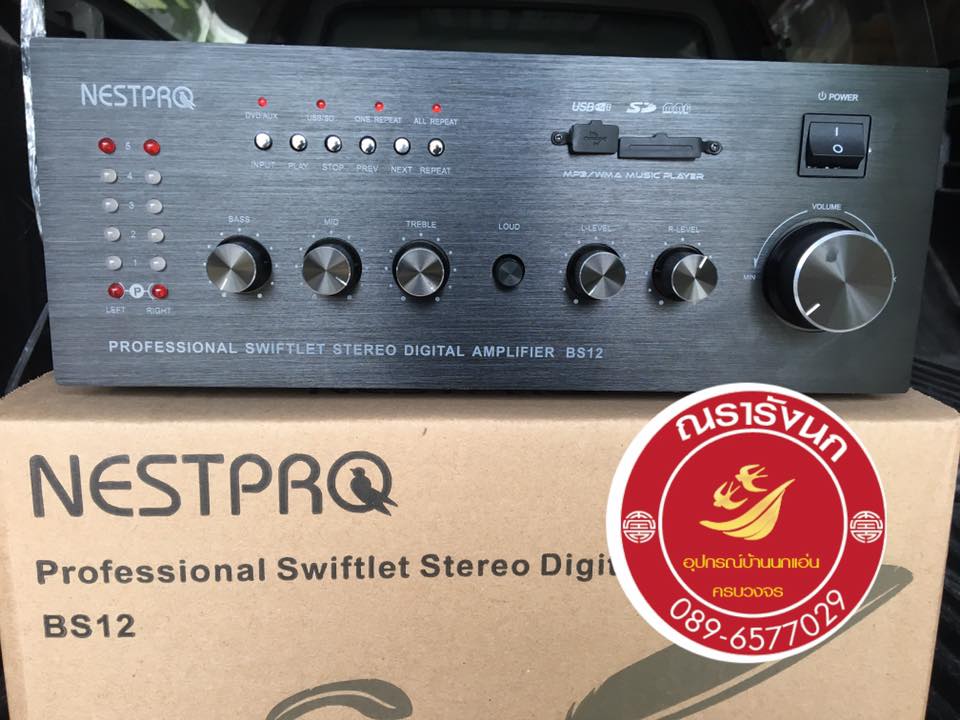 อีเมลล์: swiftletthailandshop@gmail.comB8H-Nestpro Amplifier MXBS12-2ch เครื่องเสียงรุ่นเล็กคุณภาพสูง จาก NESTPRO รองรับ USB และ SD Card กำลังขับลำโพง TWEETER 200 ตัว แยกอิสระ 2 Channel ปรับเสียงแยกได้อิสระแต่ละ Channel มีพัดลมระบายอากาศระบายความร้อนในตัว