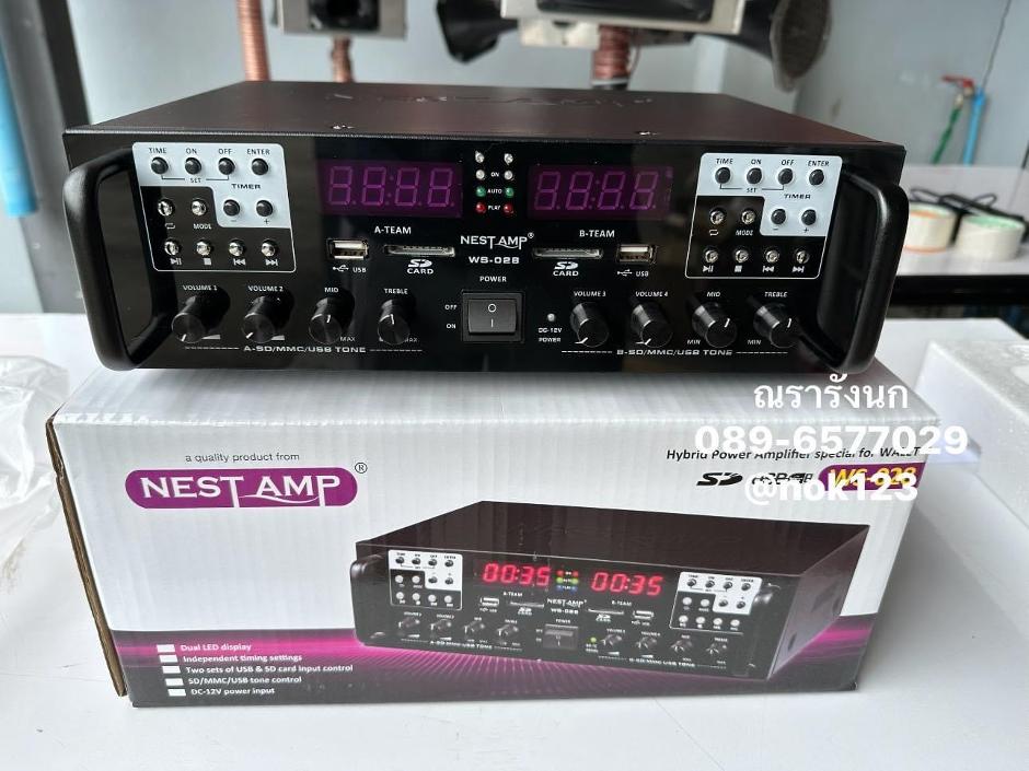 NEST AMP WS-028 เครื่องเสียงเรียกนก 2in1 มี 2 ชุดในเครื่องเดียว พร้อมทาใเมอร์ตั้งเวลาในตัว ทำงานแยกอิสระ กำลังขับ Tweeter ที่ 200 ตัว อ่านได้ทั้ง USB และ SD Card มีพัดลมระบายความร้อนในตัว ซื้อ 1 ได้ถึง 2 คุ้มสุดๆ