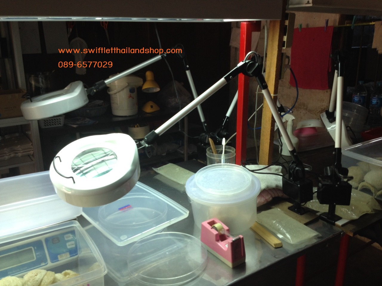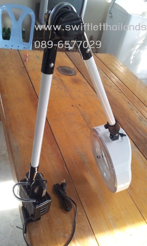 อีเมลล์: swiftletthailandshop@gmail.comS13C-MAGNIFYING GLASS WITH LAMP 8X (HD) โคมไฟพร้อมเลนส์ขยายถึง 8 เท่า สำหรับเก็บขนรังนก ให้ภาพคม ชัด ทุกอณูระดับ HD โครงสร้างแข็งแรง ทนทาน มีแขนยื่นปรับระดับได้ตามความต้องการ ช่วยให้การเก็บขนรังนกของคุณง่าย และสะดวกขึ้น เพิ่มกำลังการผลิตได้อย่างรวดเร็ว
