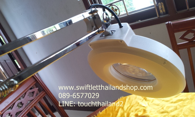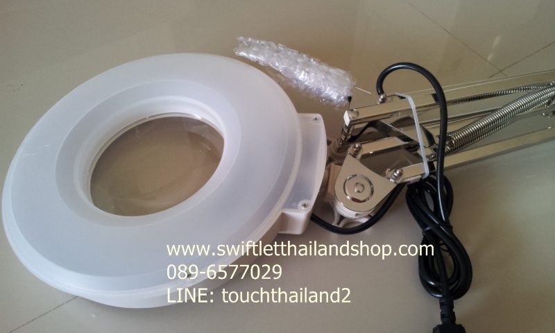 อีเมลล์: swiftletthailandshop@gmail.comS13D-MAGNIFYING GLASS WITH LED 8X (HD) โคมไฟหลอด LED พร้อมเลนส์ขยายถึง 8 เท่า สำหรับเก็บขนรังนก ให้ภาพคม ชัด ทุกอณูระดับ HD โครงสร้างแข็งแรง ทนทาน มีแขนยื่นปรับระดับได้ตามความต้องการ ช่วยให้การเก็บขนรังนกของคุณง่าย และสะดวกขึ้น เพิ่มกำลังการผลิตได้อย่างรวดเร็ว