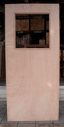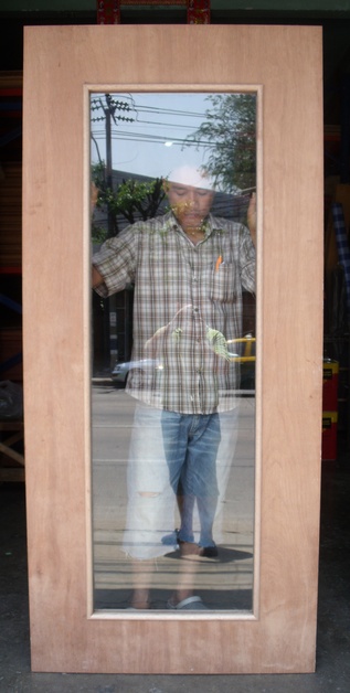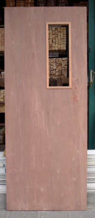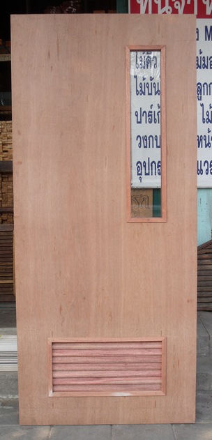ไม้อัดยางไส้ไม้ใช้ภายใน วัดขอบทั้งสองข้างและด้่านบน 15ซม.เจาะช่องกระจกอยู่บริเวณกลางบาน โดยเสริมโครงไม้จริงข้างในเพื่อเพิ่มความแข็งแรงเวลาลูกค้าใส่กระจก สำหรับห้องออฟฟิค ห้องหนังสือ ห้องครัวเป็นต้น นอกจากนี้ยังสามารถเจาะเกล็ดสำหรับห้องน้ำได้อีกด้วย