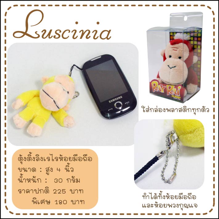 ที่ห้อยมือถือ ลิงเรไร มีหลายสีให้เลือก เป็นได้ทั้งพวงกุญแจ และที่ห้อยมือถือ