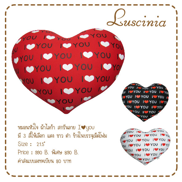รายละเอียด: หมอนหัวใจ ผ้าขนกุหลาบ ปัก I love you