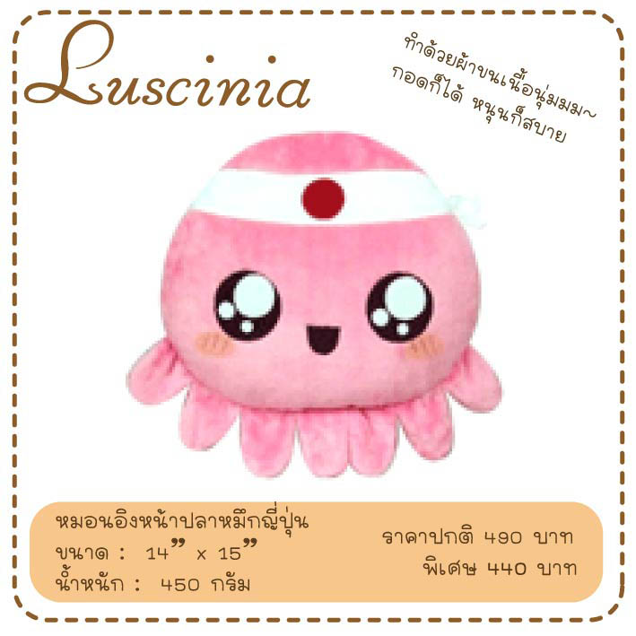 รายละเอียด: หมอนอิงหน้าตุ๊กตาปลาหมึกญี่ปุ่น