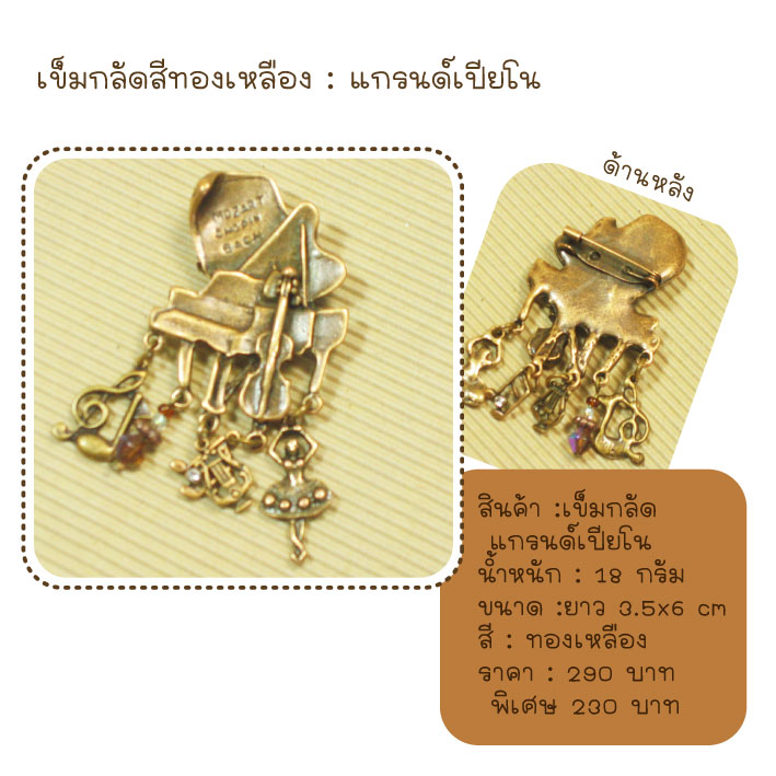 เข็มกลัดรูปแกรนด์เปียโน ห้อยตัวโน๊ต สีทองเหลือง