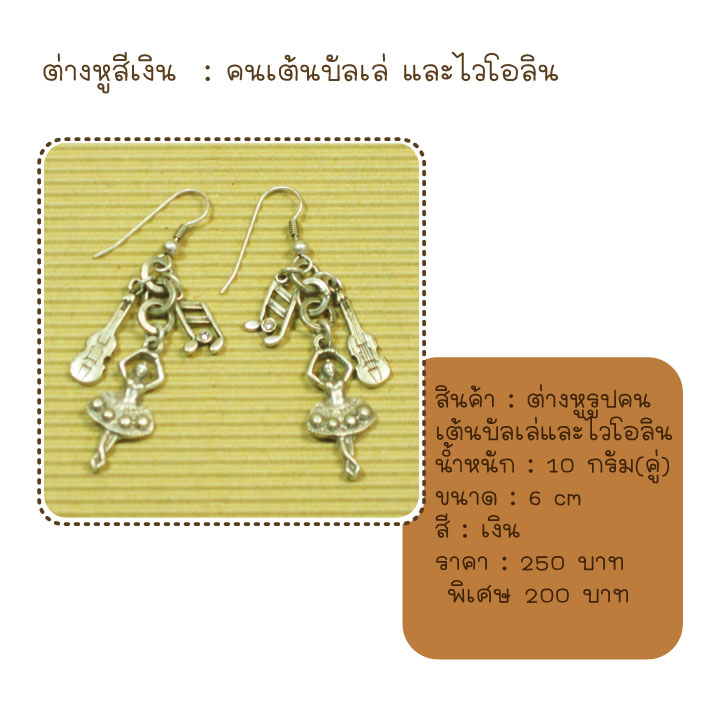 ต่างหูตุ้งติ้งคนเต้นบัลเลต์ สีเงิน