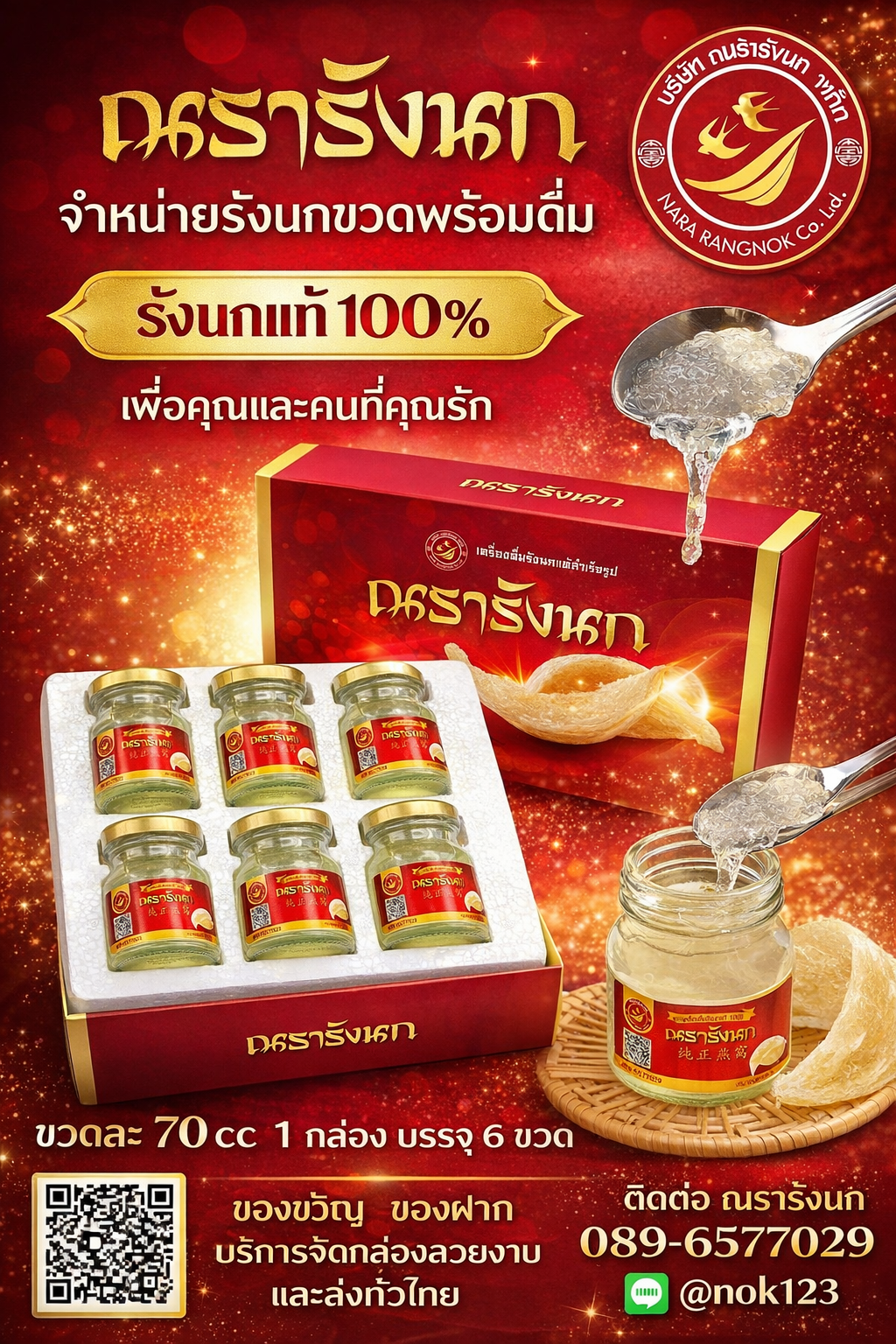 รังนกแท้ปรุงสำเร็จพร้อมดื่ม เกรด Premium แพคละ 6 ขวด ขนาดบรรจุขวดละ 70 มล เพื่อสุขภาพของคุณและคนที่คุณรัก เป็นของขวัญของฝากเลอค่าแด่ผู้ใหญ่ที่เคารพรัก ในทุกเทศกาลสำคัญ