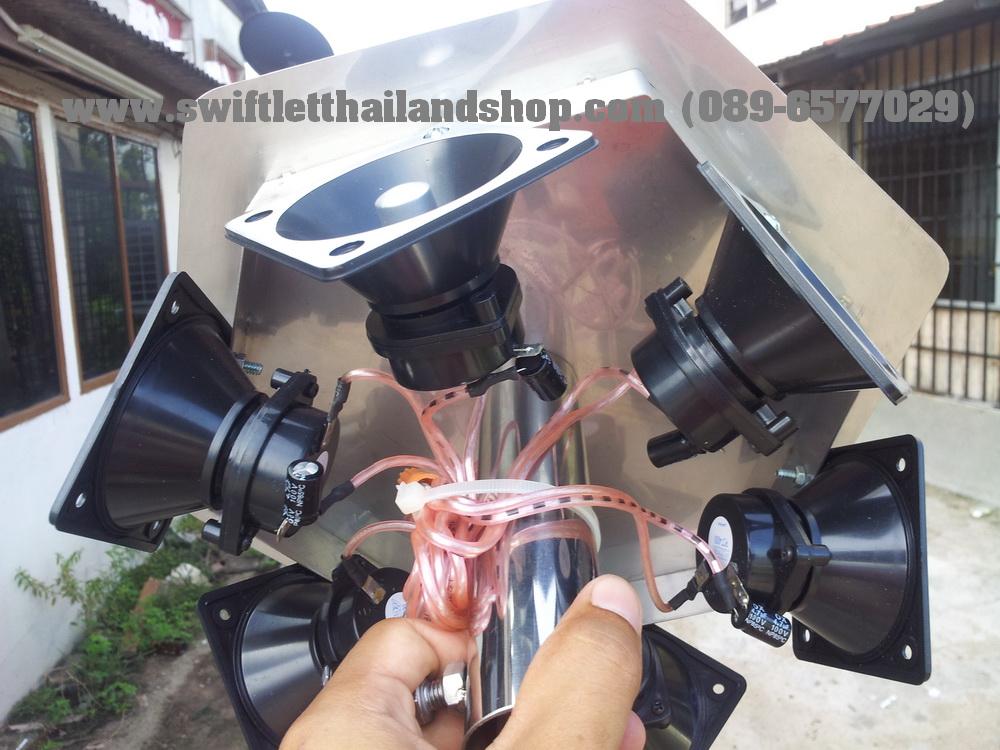 MR04: MEGA HORN HP-4000 (SH-260) ลำโพงเรียกรอบทิศทาง ประกอบขึ้นจากลำโพง HP-4000 คุณภาพสูง ขนาด 3x7นิ้ว จำนวน 4 ตัว โครงสร้างทำขึ้นจากแสตนเลสทั้งชุด กันน้ำ แข็งแรง กระจายเสียงรอบทิศทาง 360 องศา