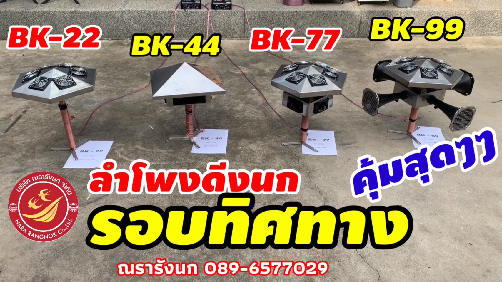 BK-22 ลำโพงเรียกนกรอบทิศทาง 45 องศา ด้วยชุดลำโพงกันน้ำแหงนขึ้นฟ้า 45 องศา มากถึง 6 ตัว ทำจากแสตนเลสทั้งชุด มีจุดยึดติดตั้งง่าย มาพร้อมสายลำโพง 10ม