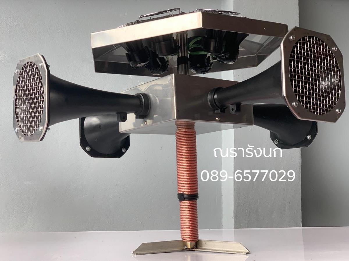 BK-77 ลำโพงเรียกนกรอบทิศทาง จำนวน 2 ชั้น ชั้นบนลำโพงกันน้ำแหงนขึ้นฟ้า 45 องศา ถึง 6 ตัว และชั้นล่างอีก 4 ตัวในแนวระนาบ ทำจากแสตนเลสทั้งชุด มีจุดยึดติดตั้งง่าย มาพร้อมสายลำโพง 10ม