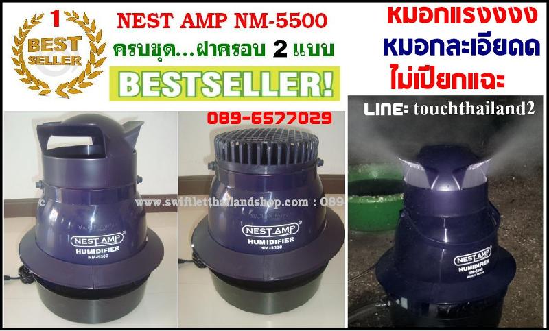 E14A - NEST AMP NM5500 TAIWAN โฉมใหม่.ไร้ใบพัด..ลดเสียงดังรบกวนนก..สุดยอดพลังขับหมอก ด้วยอัตราการหมุนของมอเตอร์ที่ 5500 รอบ/นาที มาพร้อม Skirt และฝาครอบกระจายหมอกดีไซด์ใหม่ล่าสุด ถึง 2 แบบ 2 สไตล์ ขับหมอกสูง 2.5-3.5 เมตร ครอบคลุมพื้นที่ 20 ตร.ม.