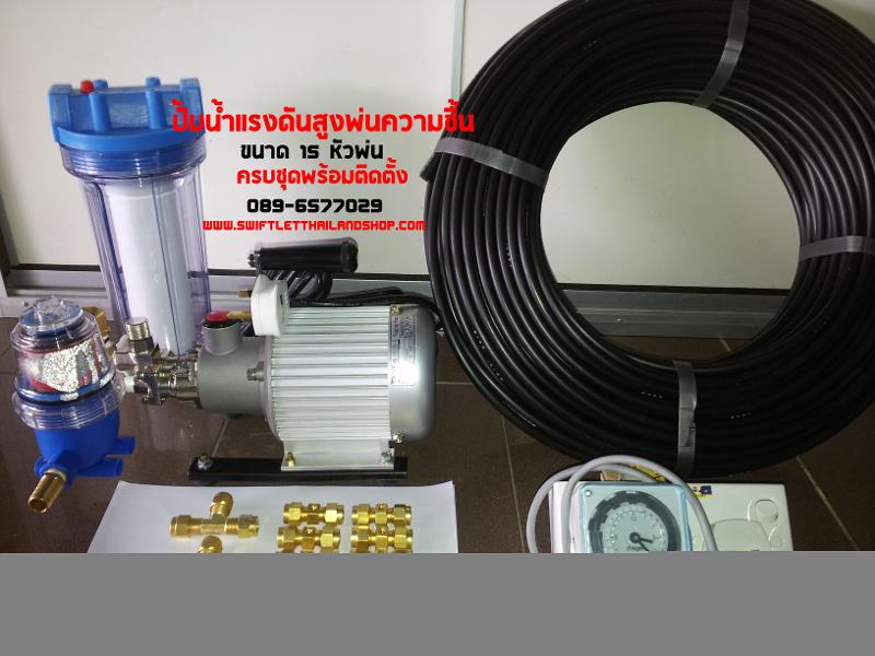 ชุดปั๊มพ่นความชื้น ปั๊มน้ำพ่นความชื้นแรงดันสูง ขนาด 15 หัวพ่น ทั้งชุดประกอบด้วย เครื่องปั๊มน้ำแรงดันสูง สายท่อน้ำยาว 100 ม. หัวพ่นทองเหลืองอย่างทนทานและอุปกรณ์ต่อพ่วงทั้ง 15 ชุด เครื่องกรองน้ำ และ Timer ตั้งเวลาการทำงาน พ่นไอน้ำขนาดเล็กสุดๆๆ ไม่ชื้น ไม