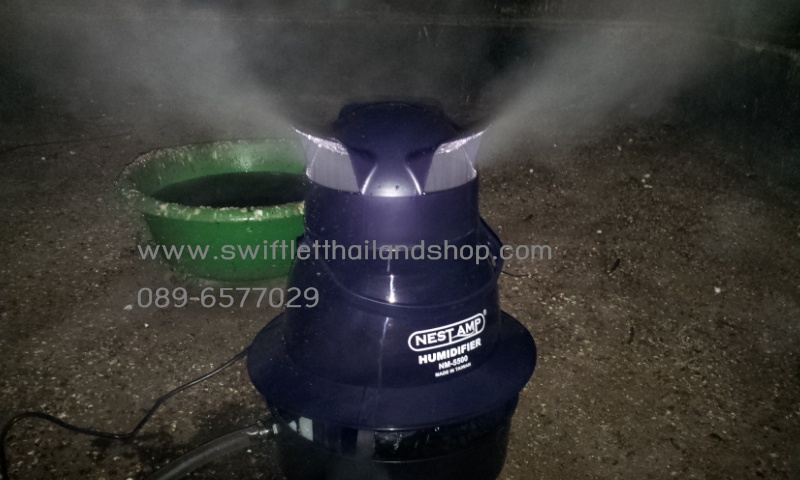 N19-NESTPRO HUMIDIFIER SET HM-8000 พ่นหมอกดีไซด์ใหม่ นกแอ่น บ้านนก สินค้าคุณภาพสูงจากไต้หวัน หนึ่งชุดประกอบด้วยตัวเครื่อง ถาดรองน้ำพร้อมลูกลอยคุมระดับน้ำอัตโนมัิติ Skirt กันขี้นก และฝาครอบกระจายหมอกหูแมวทรงสูง 4 ทิศทาง ครอบคลุมพื้นที่ 30 ตร.ม./ตัว