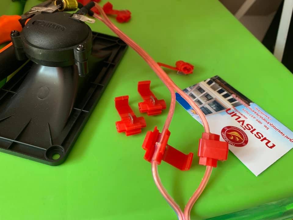 สำหรับต่อสายลำโพง สายไฟ โดยไม่ต้องปลอกฉนวน ไม่ต้องตัดสายไฟ ทำมาจากพลาสติกPP ซึ่งมีคุณสมบัติยืดหยุ่นเมื่อโดนความร้อนได้ ตรงกลางตลับเป็นแผ่นทองแดงเคลือบดีบุก ซึ่งเป็นตัวนำไฟฟ้าอย่างดี